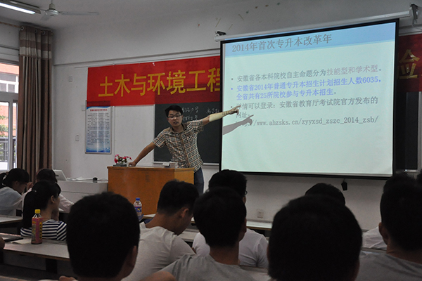 本网讯(通讯员 俞士毛,图 万士斌 )6月10日,土木与环境工程学院考研及专升本经验交流会分别在A218和C21两个教室同时举行。交流会分别就“考研” 和“专升本”两个学生关注的话题,请部分专升本与考研获得成功的学生介绍经验和体会,并就如何备考与考试过程中应注意的事项等问题与学生进行了深入的交流。