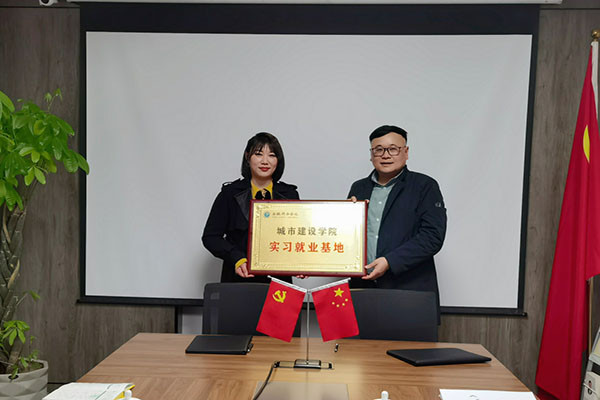 随后,赵倩青代表城市建设学院与魏红签订《实习基地共建协议书》,王孝武与魏红为实习就业基地揭牌。