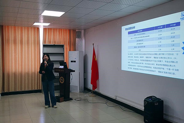就业指导讲座主讲人杨兰,分析了近两年高校毕业生就业形势,并用生动的语言、鲜明的事例帮助同学们分析如何提升面试国企的竞争力,为学生们将来步入职场提供了实用的建议和指导。她强调,同学们在大学期间要努力提升专业知识,提高专业素养,在企业的招聘中,人事也看中相关的工作经历,学分绩点也是非常重要的。