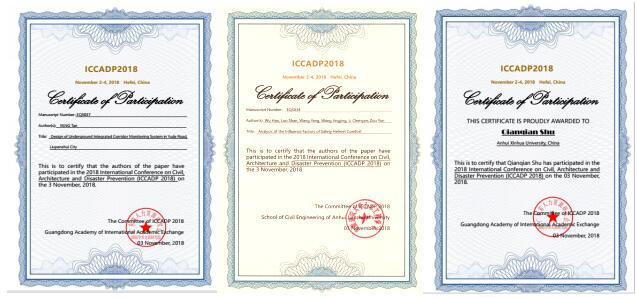 本次会议共收录来自全球相关领域学者撰写的学术论文160余篇,其中安徽新华学院师生撰写的论文“Design of Underground Integrated Corridor Monitoring System in Yude Road, Liupanshui City”和“Analysis of the Influence Factors of Safety Helmet Comfort”被会议收录并提交EI检索。