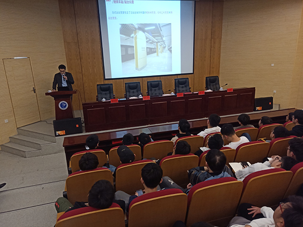 最后,孙兵作题为“城市轨道交通前景及未来”的讲座。讲述目前社会的交通现状,介绍轨道交通的由来以及城市轨道交通的发展、城市轨道交通的结构以及轨道建设等专业知识。讲座结束后,孙兵提出六点殷切希望,希望大学生们重视专业课、锻炼写作能力、培养团队意识、养成良好生活习惯、珍惜学校美好时光、做好奋斗准备。同学们一致表示认同,并根据自身发展问题积极与孙兵进行交流。