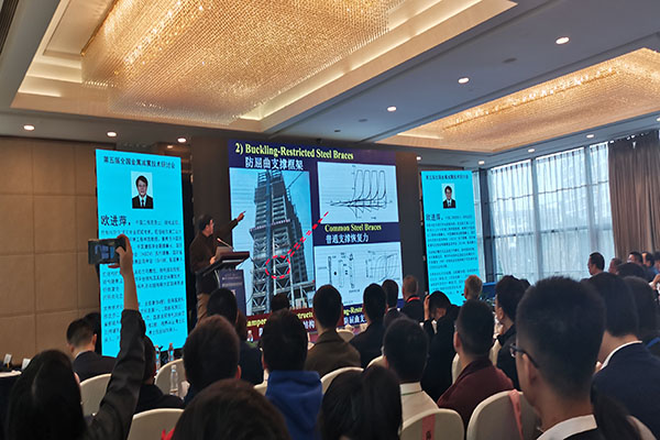 研讨会上,中国工程院院士、哈尔滨工业大学教授欧进萍先生发表题为《金属承载-消能减振结构抗震性能分析与比较研究》的报告,报告中详细讲述了“新型防屈曲开斜槽耗能钢板剪力墙”“预制装配防屈曲支撑钢结构”等项目研究进展及工程实例。中国工程院院士、国机集团工程振动控制技术创新团队首席专家、中国机械工业集团有限公司教授级高工徐建发表题为《多维减隔振(震)技术研究》的报告,叙述了大量减隔振技术的研发与减隔振装置在建筑及大型设备安装中的应用。会上还有同济大学李国强教授、广州大学副校长周云教授以及全国各大设计院高工等14位该领域专家发表专题讲座。本次会议的报告从减震技术的研发讲到工程实践应用,为我校重点实验室下一步开展减震技术研究提供了具有参考价值的研究思路和发展方向。