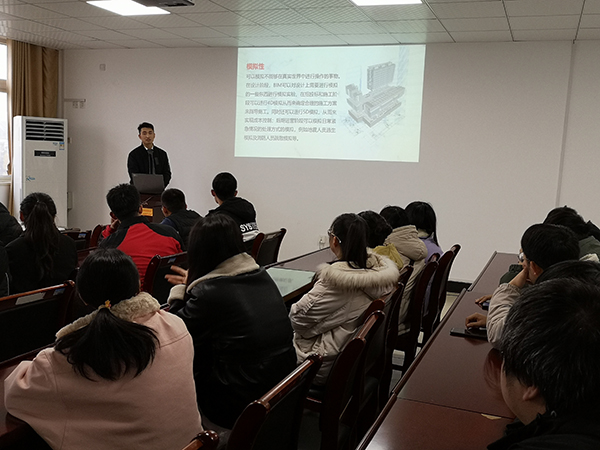 本网讯(通讯员:刘婷婷)12月2日下午,城市建设学院邀请鲁班科技有限公司技术总监赵伟,为工程管理系师生作了一场题为“BIM在工程中的应用及行业发展趋势”的学术讲座,让师生们受益匪浅。讲座由工程管理系主任何小雨主持,工程管理系全体教师以及工程管理专业学生参加了本次讲座。