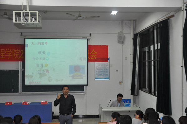 接着,杨光结合土木学院近些年的考研情况,分析了考研录取率和研究生培养类型,告诫同学们要尽早确定目标,权衡竞争态势,准确定位自己,理性选择学校和专业。他建议同学们积极调整心态,戒骄戒躁;加强团结,共同努力,相互激励;加倍投入精力克服外语、数学等短板;坚定信心,劳逸结合,并勉励全体同学要坚持不懈,一定会考上理想的学校。