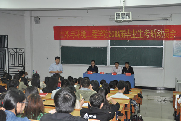 动员会在大家热烈的掌声中正式拉开了序幕。首先,朱兆健做动员讲话,他指出比学习知识更重要的是学习一种思维方式。本科教育的核心是通识教育,主要为了培养学生具有批判精神和独立思考的能力,并为终身学习打下基础;研究生教育则是培养学生能够有机会有能力自由释放,用实践去检验猜想。他着重强调,考研不仅是为了个人的幸福和梦想,更是为了国家和经济社会发展的需要。2016年是我校“十三五”规划的开局之年,加强教风学风建设,提高大学生专业综合能力和考研水平是土木学院一项基础性的重点工作。