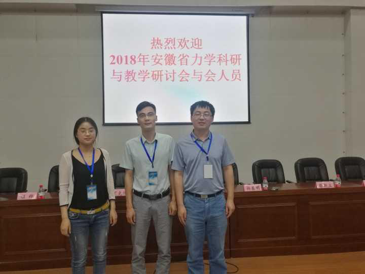 本网讯(通讯员:张心钰)6月9-10日,2018年安徽省力学科研与教学研讨会在安徽建筑大学召开,本次会议获得安徽省科协的大力支持,由安徽省力学学会主办,安徽建筑大学承办。我校土木与环境工程学院王峰、叶中豹和马玉荣三位老师参加了本次会议。本次会议的内容分为两大部分:一是特邀报告;二是青年教师和研究生的学术交流报告。参会代表来自于安徽省各大高校和科研所,主要是从事力学教学和科研的研究员。