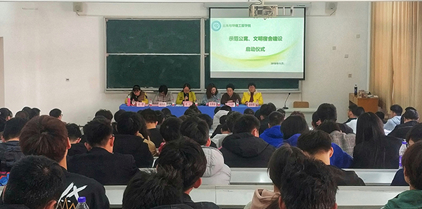 本网讯(通讯员:魏高莉)为响应安徽新华学院示范公寓、文明宿舍建设文件的号召,培养学生高尚的道德情操和良好的生活习惯,塑造健康文明、积极向上的宿舍文化氛围,营造“平安、健康、文明、和谐”的宿舍环境,11月27日中午,土木与环境工程学院举行示范公寓、文明宿舍建设启动仪式。土木与环境工程学院党总支副书记、副院长李洁,党总支组织委员、学管秘书魏高莉,党总支组织员张斯媛,党总支学生第一支部书记赵群,党总支学生第二支部书记牛山林,党总支学生第五支部书记盛翠娟出席,各新生班级辅导员,新发展党员代表以及各新生班级班长、寝室长代表参加本次活动。