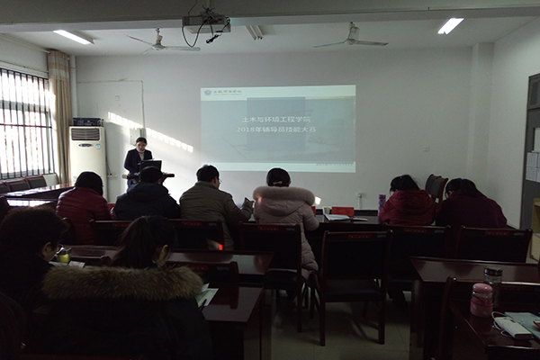 本网讯(通讯员:张杨)为推动土木与环境工程学院辅导员职业化、专业化发展,提升辅导员职业技能和工作水平。1月11日上午,土木与环境工程学院2018年辅导员职业技能大赛决赛如期举行。土木与环境工程学院执行院长蒋亚龙、行政副院长李洁、院长助理谢汝强、学生处主管王强亚、行政秘书张杨、土木工程系系主任蒋亚琼及教师代表张劼担任本次比赛评委,土木与环境工程学院全体专兼职辅导员参加了本次比赛。