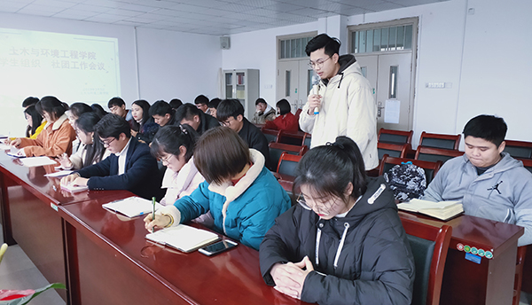 本网讯(通讯员:魏高莉)为进一步完善土木与环境工程学院学生组织、社团工作体系,更好地开展新学期的工作,3月5日,土木与环境工程学院召开学生组织、社团工作会议。土木与环境工程学院副院长朱诵贵,行政秘书刘伟,学管秘书魏高莉,各学生组织、社团指导老师及代表出席本次会议。