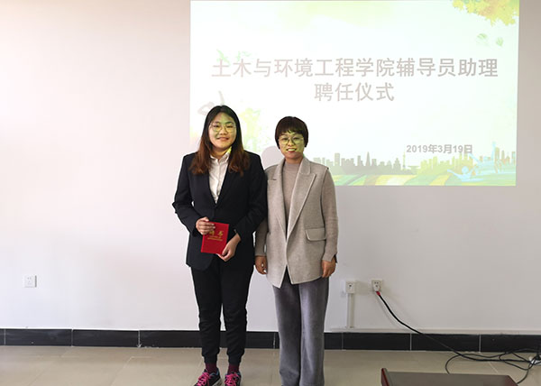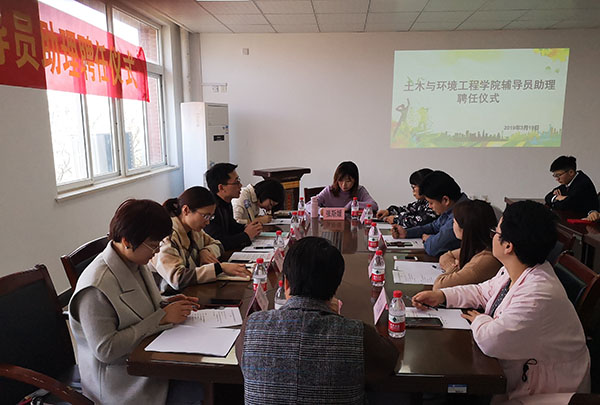 本网讯(通讯员:魏高莉)为进一步发挥土木与环境工程学院辅导员助理的重要作用,促进学生管理的科学化、规范化和制度化, 3月19日中午,土木与环境工程学院举行辅导员助理聘任仪式,土木与环境工程学院副院长朱诵贵,行政秘书刘伟及全体辅导员参加本次聘任仪式, 仪式由学管秘书魏高莉主持。