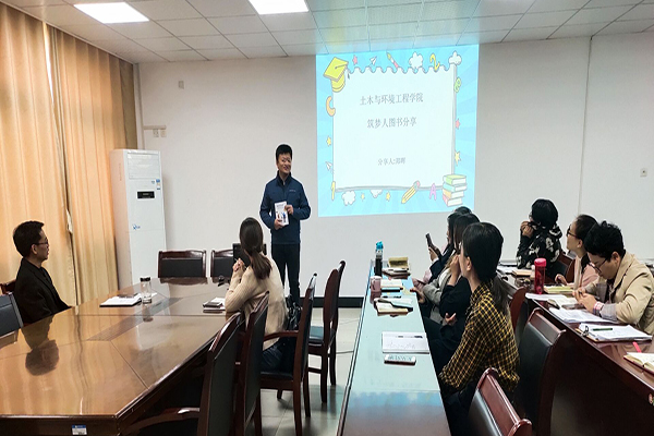 土木与环境工程学院自今年4月份起,坚持每周开展一次筑梦人读书分享活动,读书活动为辅导员间的学习和交流搭建了平台,初步实现了提高队伍素质、提升文化品位、增强工作能力的目的,同时也促进了辅导员对工作的思考、深化了对工作的认识。