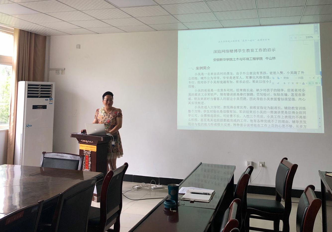 牛山林通过选取自己带班经验中一名学生典型,分析问题,进行理论分析,结合问题和现象,提出解决方案,化解矛盾。案例中的男生,因为家庭教育的影响,性格看似坚强,实则叛逆,他曾担任班级主要学生干部,却因深陷网络赌博精神涣散,无法专注于学习和工作。牛山林简单介绍学生的基本情况,并对学生存在的问题进行原因分析,提炼出案例的关键点,指出这个案例看似属于学生不能自控的问题,实则属于在巨大思想和心理压力下而导致可能出现了焦虑症、抑郁症、强迫症等严重性的问题,因此处理过程中要注意对学生的心理疏导,以防引起学生的偏激行为。随后,通过对案例的理论分析,牛山林进行针对性的解决。她收集相关信息,掌握详细资料,进行归纳总结,寻找相关事例,制定解决方案,并建议该生到专科医院进行诊治,同时建立长效机制,形成长期经验。最后,通过对该生的积极引导和药物治疗,该生家庭氛围得到良好的改善,并顺利应征入伍。牛山林结合该案例,表示,作为一名教育工作者,从新生入校起就应当教育他们树立正确的价值观,做一名有理想、有追求的大学生;加大对学生心理素质教育工作的力度,从生活到学习密切关注一些潜在群体,给予他们关心;心存爱学生之心,耐心,发现学生的优点,让学生充分自主,不断自律、自信、自强,帮助学生在正当事业努力中获得全新的成就体验,同时帮助学生找回亲情的可靠和温馨。
