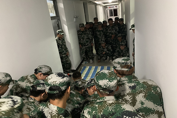 本网讯(通讯员;杨雨婷、辛慧敏)学军人风采,强自身素质。为规范学生作息,形成良好的习惯,土木与环境工程学院2020级新生辅导员们联手军训教官,于9月17日晚对新生寝室内务工作进行培训。