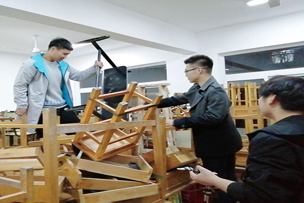 “楼管宝宝”是少有休息日的。空余时间要去检查教学楼设备、多媒体设备,决定是否要报修;去整理教室借用申请单、巡逻楼道、关闭无课教室;盘点桌椅,数清数目;还需要去与老师对接教学楼事务等工作。行走的步数在各类记步软件上见证着他们的汗水与辛苦。“楼管宝宝”是团结一致的。部门成员之间相亲相爱,配合非常默契。一直有着老带新的传统,工作技能采取“传、帮、带”的形式,非常娴熟。