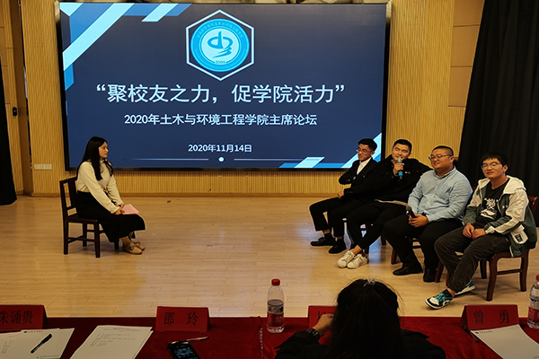 论坛会开始,受邀返校的历届主席们以“我的大学,我的青春”“如何处理好工作和学习之间的关系”“专业发展方向”等主题为起点,述说他们当任学生干部期间的经历以及取得的成绩,借此帮助在场的学生骨干们端正工作态度,更好地服务全院师生。他们以现阶段的工作为契机,讲述专业发展情况,描绘专业发展前景,引领在校学生领悟专业发展方向。最后主持人高璐瑶邀请学长们进行访谈,进行话题讨论,并与现场观众进行互动。同学们纷纷提出在日常工作中的困难与疑问,学长们也认真的为各位同学解答。