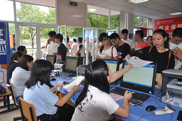 本网讯(通讯员 俞士毛)8月31日以来,我院2014级新生报到异常火爆,截止到目前,我院新报到人数约达1400余人,共14个专业,尽管连日来合肥天气多以阴雨天为主,但是初秋的细雨挡不住华园热烈的迎新气氛,一辆辆满载新生的校车驶进新华园,一阵阵接新高潮的此起彼伏。