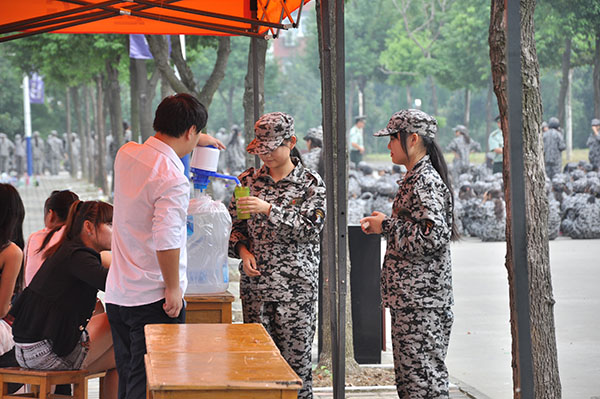 一大早,天空蔚然,如迷彩般夹带着些许云朵。厚德路操场前前,顷刻间便填满一块块毫不动摇的方阵,他们身着迷彩服,像极了蓝天上自由飞翔的鸟儿。虽然教官还没有到来,但是土木学院早已做好了15个连的分组方案,新生们在老师的指挥下,按照各自的专业、性别很快排好了队伍。他们身姿挺立、统一的着装,带着必胜的信念,接受青春的挑战。对他们来说军训是学习,军训是磨练,军训更是收获。
