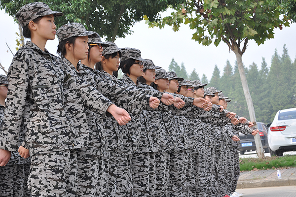 对于新生们来说,军训不但是培养组织纪律性,更重要的是磨练意志。早晨气温尚好,临近中午的时候,太阳的温度加上闷热的空气,军训学员的脸上满是汗珠。可是他们也未曾轻言放弃,一遍又一遍枯燥乏味的动作,一句又一句不得违抗的命令,一套又一套令人生畏的纪律……三天的军训给同学们留下的是咸咸的汗水、酸痛的四肢,这就是军训对同学们身体素质、意志信念、组织纪律的考验。教官们带领学生们训练:定点转向、原地踏步、齐步走和起步跑等基本动作,同学们一板一眼的学,教官一遍遍耐心地指导,阳光将大家的皮肤晒得发红,汗水不断地往下流,却毫不影响同学们的每一次转身、踏步和摆臂的质量,口号响彻云霄,军人风范初见端倪。