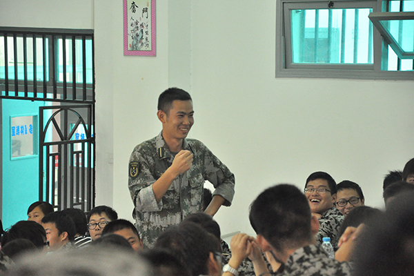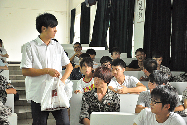 天空的细雨让原定在广场举办的联欢活动无法进行,大家就化整为零,以连队为单位,在教学楼内举行联欢活动。虽然大一新生刚入校没几天,但是通过军训大家很快相识、熟悉,并不怯场。独唱、武术表演、小品、朗诵、舞蹈等各类节目你刚唱罢我登场,在大家的掌声中,同学们尽情展示着个人才华,各连教官、辅导员们也拿出自己拿手的节目,与新生们共联欢。笑声、掌声让联欢会的高潮此起彼伏。同学们争先恐后上场表演,大家齐声喝彩,教学楼里一片欢腾。