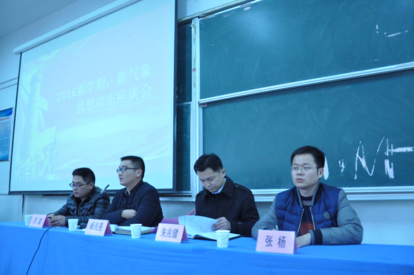 本网讯(通讯员 张杨 摄影 武冲)我院为准确把握学生舆情,增强新学期学生教育管理的针对性、实效性,于2016年3月2日下午在我院召开新学期学生思想动态座谈会。我院执行院长朱兆健、院长助理杨兆亮、行政秘书张杨、团总支副书记刘波及150余名学生干部参与了本次活动。