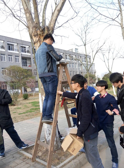 3月4日,2014级风景园林专业1班全体同学在专业老师的带领和指导下,对学校现有的植被进行种质资源调查;3月5日,班级同学分组对调查结果进行汇总;3月8日,订做树木挂牌;3月12日开始对校园内树木进行挂牌活动。3月底树木挂牌活动结束后,2014级风景园林专业1班的全体师生对活动的内容和收获进行了总结和讨论。