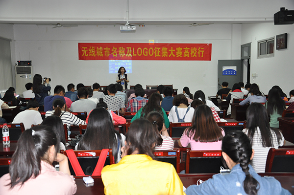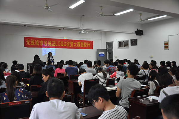 本网讯(通讯员 张杨 摄影 武冲)5月27日中午,合肥市经济和信息化委员会携手安徽四创电子股份有限公司来到我院,向土木学院2014、2015级工业设计专业同学宣传“无线城市名称及LOGO”征集比赛。