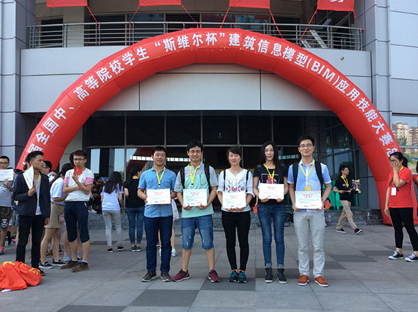 我校参赛队伍为刘录洋、夏青霞、王永康、邓星宇、赵明组五位同学成的“华园建一”队,由吴韬老师负责组建和全面指导,王娅蓉、张丹丹、朱栋华、陈雅君老师协助指导。该团队于2016年3月份在全国网络晋级赛中脱颖而出,成功晋级总决赛。本次大赛由工程设计、绿色建筑分析、工程造价、工程管理四个比赛专项组成,各项均分为软件操作和理论答题两部分。经过四场专项比赛的激烈角逐,我校“华园建一”队在本次大赛中取得了七年来的历史性突破,获得全国全能一等奖及绿色建筑分析专项一等奖,工程设计专项二等奖,工程造价、工程管理两个专项三等奖的优异成绩。