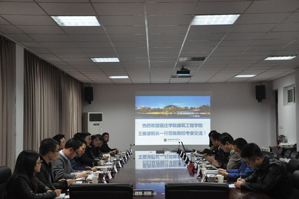 随后,王振波详细介绍了宿迁学院建筑工程学院的教学特色、专业设置、人才培养等有关情况。他充分肯定了我校教学成果,对我校特色办学给予了高度评价。他在交流中强调,安徽新华学院土木与环境工程高度重视学生实践能力培养,依托现有教学资源,充分发挥办学特色,在学生工作等诸多方面取得了较好成绩,值得宿迁学院学习借鉴。