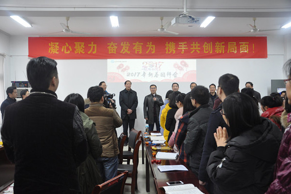 首先,集团和学校领导进行慰问和团拜。随后,朱兆健代表土木学院对集团和学校领导的团拜表示感谢,全体教职工祝愿新华事业蓬勃发展,蒸蒸日上。朱兆健结合自己的新年感想、思考,规划2017年的工作蓝图,同时对全体教职工提出要求,希望能在新的一年里土木学院能够取得更多的教育成果。蒋亚龙在2016年工作总结的基础上,指出存在的一些问题,并进一步宣贯了学校2017年工作计划。杨光讲述安徽省教育厅副厅长、中共安徽省委教育工委委员解平在寒假期间对土木学院党建与思政建设工作等的调研情况,并汇报了当前的党建工作及行政工作。谢汝强解读了《安徽省教育厅关于成立安徽省普通本科高校专业合作委员会的通知》。