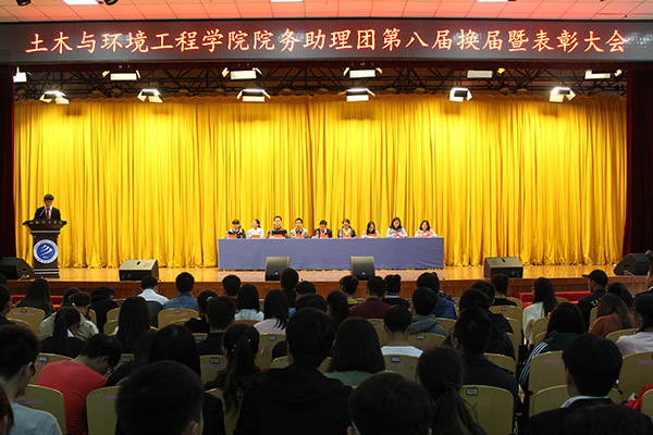 本网讯(通讯员:张杨)为更好的锻炼学生能力,促进学生工作迈向新台阶,同时更好的为土木与环境工程学院师生服务。土木与环境工程学院于10月24日中午在校大礼堂举行第八届院务助理团换届暨表彰大会。土木与环境工程学院执行院长蒋亚龙,行政副院长李洁,院长助理谢汝强,教学秘书汪睿,行政秘书、助理团指导老师张杨,辅导员代表,土木与环境工程学院院务助理团新老成员及学校社团代表参加了本次大会。