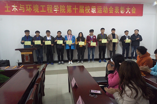 本网讯(通讯员:张杨)为表彰在我校第十届校级运动会中表现优异的运动员和工作人员,11月22日中午,土木与环境工程学院举办了第十届校运动会表彰大会,出席此次大会的有土木与环境工程学院执行院长蒋亚龙,行政副院长李洁,行政秘书与辅导员代表,以及运动员代表。