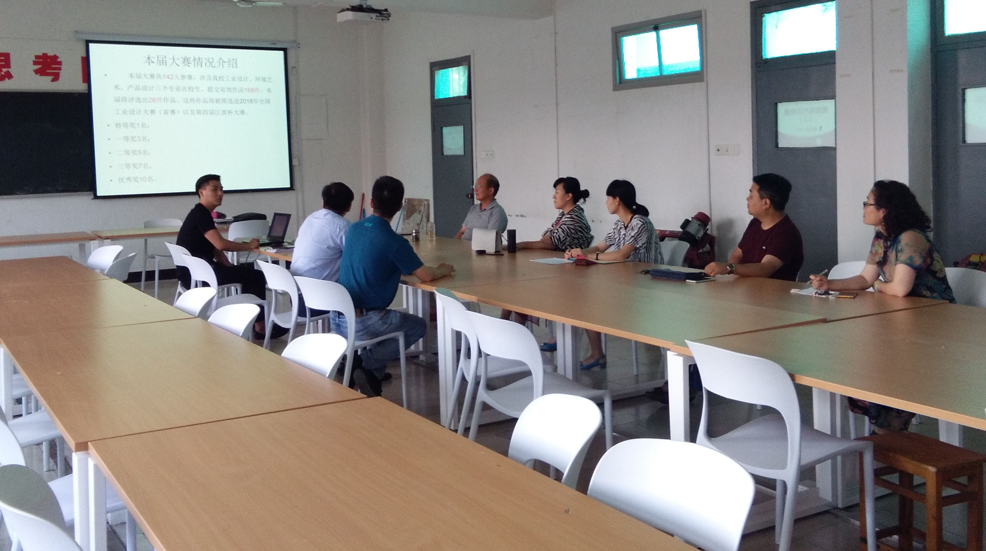 本网讯 (通讯员:张心钰) 6月11日下午,我校第二届大学生工业设计大赛作品评审会在土木与环境工程学院举行。此次评审会旨在遴选学生优秀作品为参加安徽省“江淮杯”工业设计大赛及全国大学生工业设计大赛做好前期准备。会议邀请了土木与环境工程学院执行院长操宏华、副院长谢汝强、工业设计专业学科带头人杨大松教授及相关专业教师担任评委,工业设计专业负责人周宇主持会议并作汇报。