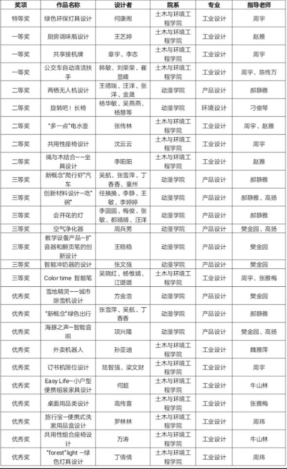 本次大赛共一百六十人参赛,涉及我校各个设计专业在校生,提交有效作品196件,涵盖工作、生活、学习、服务与公共设施等各方面产品设计。会议中,评委组紧紧围绕“责任、创新、梦想,设计提升价值,创意美化生活”主题展开评审,共评选出特等奖一名、一等奖三名、二等奖五名、三等奖七名及优秀奖十名(详见文末获奖名单)。