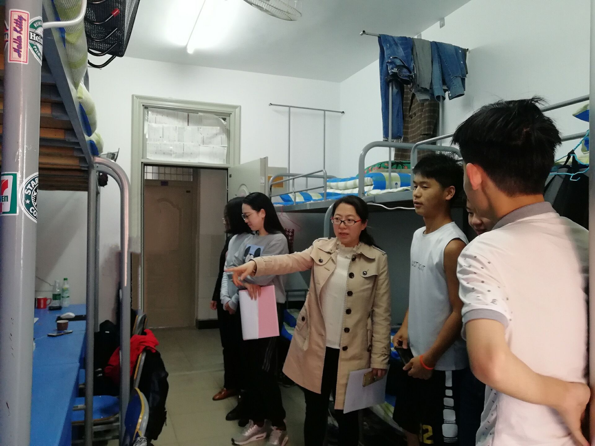 宿舍楼道内无堆放垃圾现象,大部分学生宿舍能够保持干净整洁的室内环境,但仍有小部分宿舍仍存在被褥不整洁、地面清扫不干净、物品摆放杂乱、寝室内吸烟、通风状况较差、阳本次检查围绕宿舍内务整理、安全隐患排查、垃圾袋装化等进行。检查发现,台上堆放杂物、电源接线板乱放等问题。学工人员做宿舍存在的安全隐患做了详细的记录,并现场进行整改处理;对于卫生较差的宿舍现场指导学生整理打扫。检查过程中,学工人员开展了春季传染病的预防宣传工作,引导学生养成良好的卫生习惯和健康的生活习惯,提高身体素质。