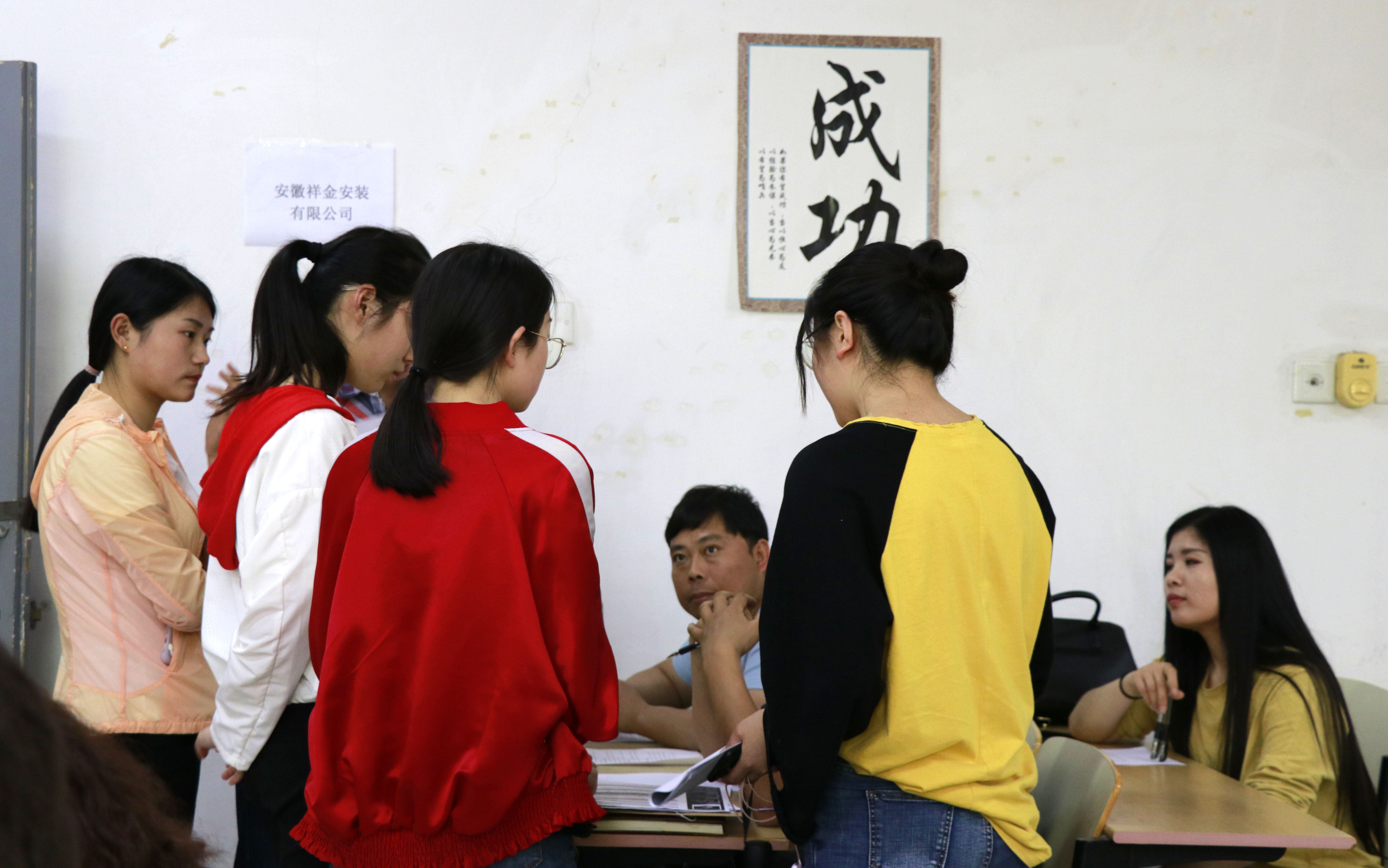 安徽祥金安装有限公司在宣传片播放完毕后,由人力资源部负责人为毕业生详细地介绍了公司的企业文化与职业发展方向。在深入了解用人单位后,现场一些毕业生投递了个人简历并留下来面试。