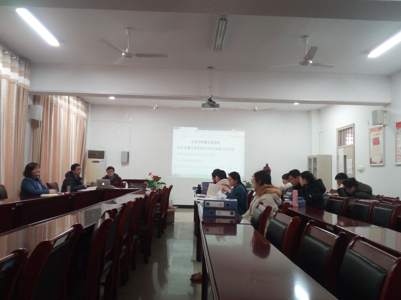 会议第一阶段,吴睿对本学期实验室的相关工作进行总结,从实验室建设、改造、管理制度、文化建设、档案管理以及实习基地建设等多个方面进行了汇报。针对土木与环境工程学院实验室档案体系建设进行了重点要求,进一步规范了仪器设备使用、易耗品使用、安全卫生、档案管理等工作。此外,针对2019年度土木与环境工程学院实验室工作制定了相关计划,特别针对2019年安徽新华学院即将进行的专业评估和审核评估做出专项规划。