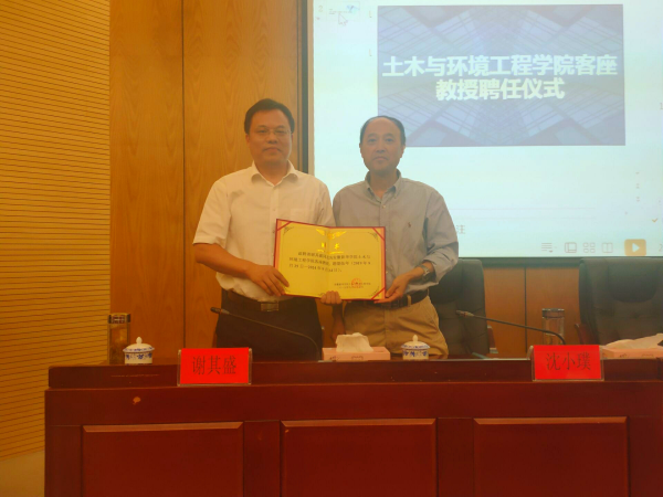 首先,谢汝强介绍了谢其盛教授的简介和个人的突出成果,并宣读聘任文件。沈小璞为谢其盛颁发聘书并合影留念。