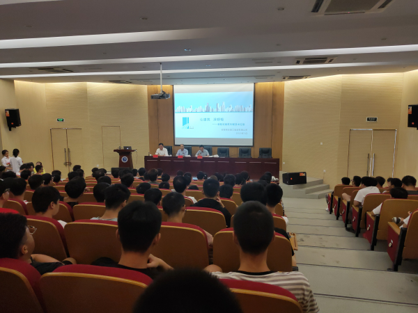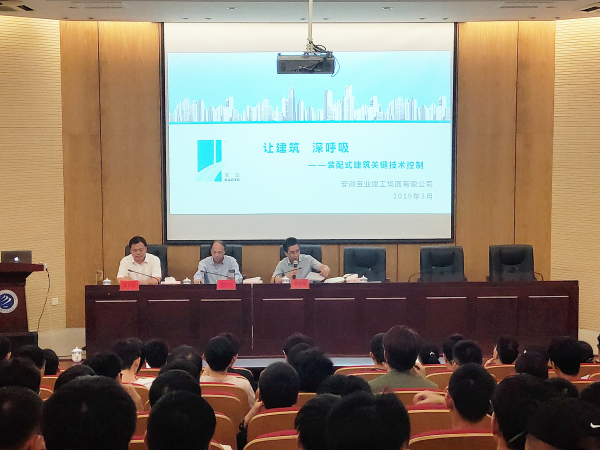 随后,谢其盛作题为“装配式建筑技术”的讲座,通过视频播放,向与会人员介绍宝业建工集团有限公司,通过PPT演示,讲解“宝业建工集团的装配式建筑技术”、“中国装配式建筑未来发展之探讨”两大主题。他结合国外发达国家的装配式建筑的先进技术,对国内装配式建筑的发展提出自己的见解。他表示,应基于BIM技术的全链条信息化管理,实现设计、生产、施工、装修和运维的协同,并建议学生深入学习BIM技术,发扬工匠精神,强化自身进步,为祖国未来建筑技术的发展做出贡献。