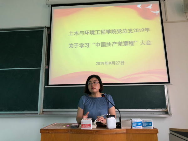 本网讯(通讯员:张斯媛)为进一步推进“不忘初心、牢记使命”主题教育,9月27日中午,土木与环境工程学院党总支在教一417开展了《中国共产党章程》学习,土木与环境工程学院党总支书记邵玲、党总支副书记蒋亚龙、朱诵贵,各学生支部书记及全体教师、学生党员参会。