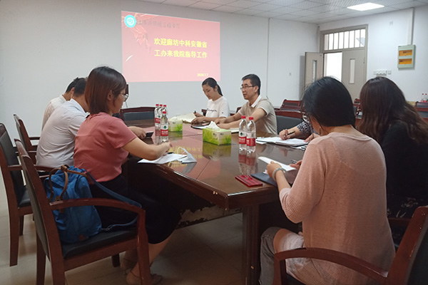 本网讯(通讯员:谢汝强)7月7日,廊坊中科安徽省工办负责人刘兴一行三人来土木与环境工程学院BIM实验室调研,参加会谈的有土木与环境工程学院副院长谢汝强,院长助理罗月颖,工程管理系主任何小雨,土木工程系主任蒋亚琼,建筑学专业教师高秀娟。教务处处长助理施伶俐应邀出席会议。