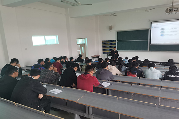 中午12时,招聘会正式开始,公司人力资源部负责人通过PPT给学生们详细介绍了公司概况。蓝海建设集团有限公司是一家专业从事公路桥梁、市政工程、建筑工程等施工的大型民营企业;获得全国建筑业AAA级信用企业,全国交通运输工程建设安全生产标准化一级施工企业等各项荣誉。业务涉及各类公路、市政道路、房建项目,园林项目以及PPP、EPC等项目。目前公司在建项目100余个,遍布全国22省市,是一家具有综合竞争力的公司。