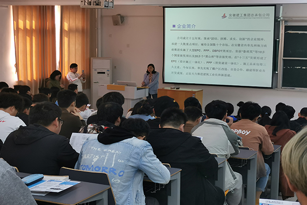 本网讯(通讯员:刘伟、 李龙港)为切实做好土木与环境工程学院毕业生就业工作,大力构建毕业生与用人单位的交流平台,积极为用人单位提供优秀的人才,10月19日,土木与环境工程学院举行2021届毕业生第七场招聘宣讲会,安徽建工集团总承包公司来到土木与环境工程学院开展毕业生招聘。
