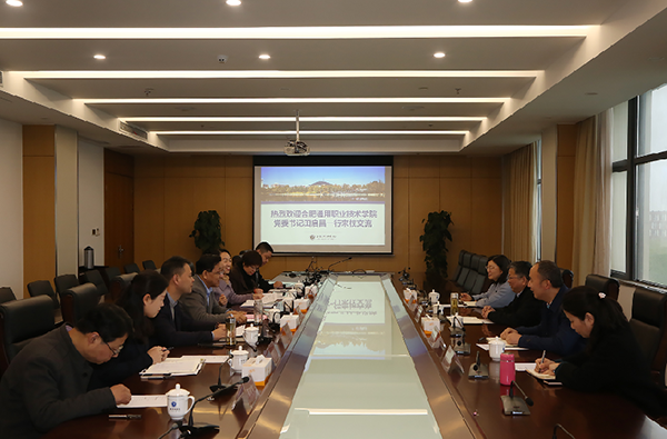 座谈会由王丽主持。邸建伟首先代表学校对合肥通用职业技术学院来访表示热烈欢迎,并就我校专业建设、办学特色以及办学成果等进行了介绍。田启昌介绍了合肥通用职业技术学院的发展概括、学生培养等情况,表示双方可以进一步加强交流,共同合作。