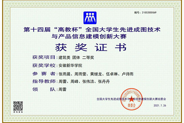 安徽新华学院经过校级选拔赛、省级复赛,共遴选出城市建设学院建筑学专业张雨晨、刘茹、周雨萱等7名学生组队参加全国决赛。在建筑学教师周蕾等四位指导老师的的精心指导下,经过紧张的暑期强化训练,取得了可喜的成绩:共获得团体二等奖1项、个人二等奖5项和个人三等奖1项。