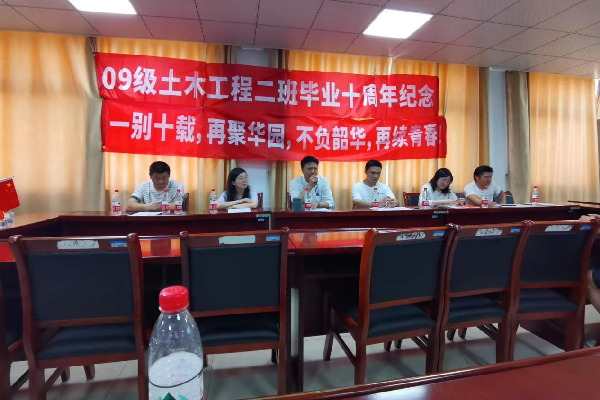 本网讯(通讯员:李燕飞)一别十载,再聚华园,不负韶华,再续青春。7月8日上午,城市建设学院2009级土木工程本科2班校友毕业十周年座谈会在实验1号楼303开展,城市建设学院副院长崔风波,安徽新华学院校友工作办公室郭圆,城市建设学院土木工程系主任蒋亚琼、教师代表唐月出席会议。2009级土木工程本科2班班长唐先水主持会议。