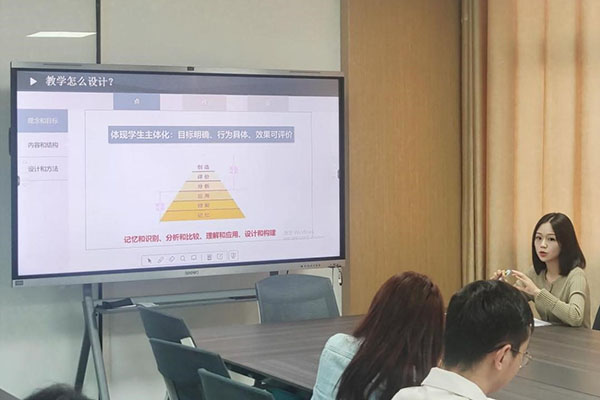 活动旨在提高新教师的授课水平和赛教能力,帮助新教师充分认识课堂教学的重要性。吴婧以“赛教相长,融合创新”主题为分享主线,对教学目标、教学重点和难点、教学过程、导入环节、新课教学、课堂互动、巩固练习与作业、课堂小结等方面的教学方法和手段进行讨论。