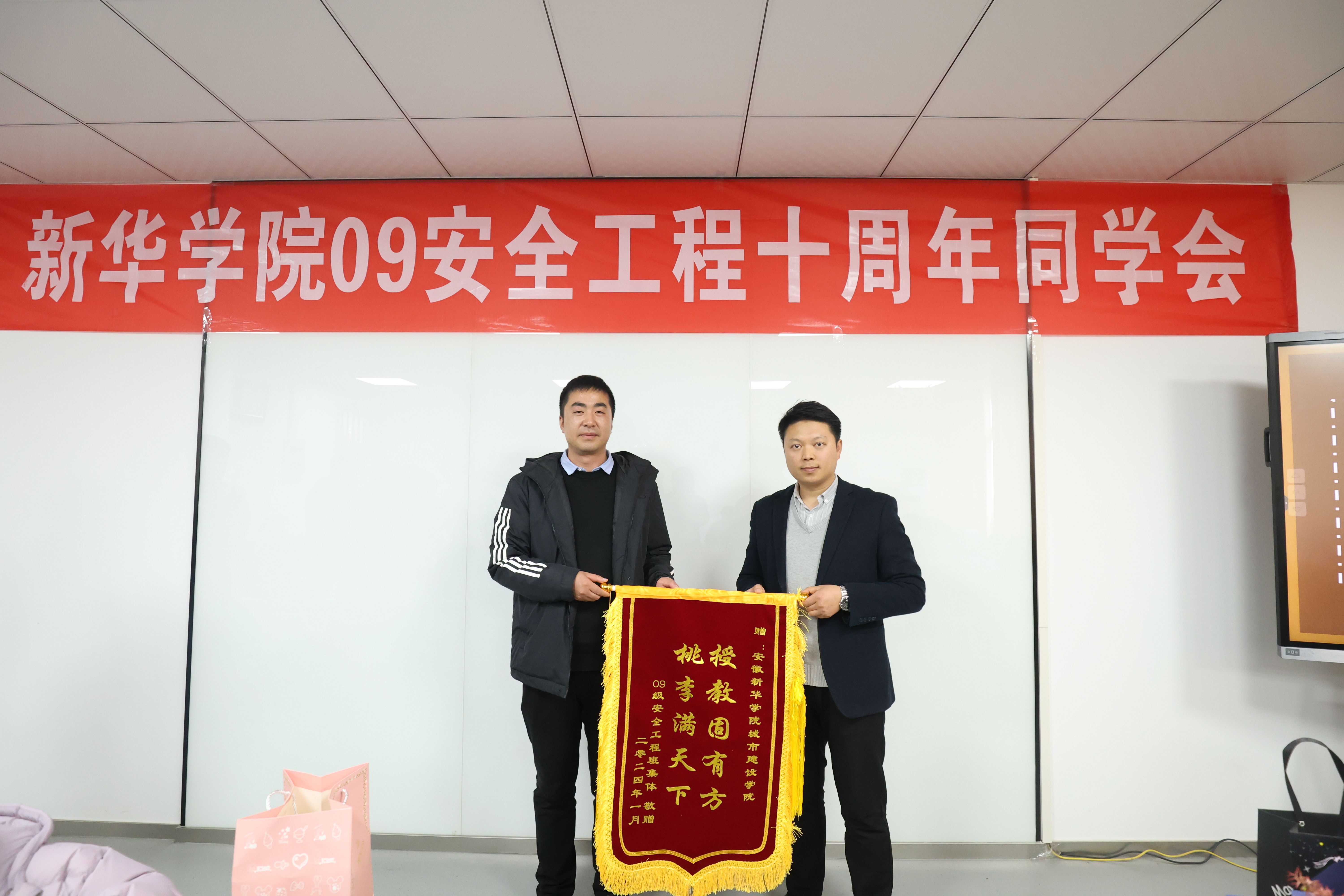 座谈会后,校友代表向学院赠送了锦旗及纪念品。