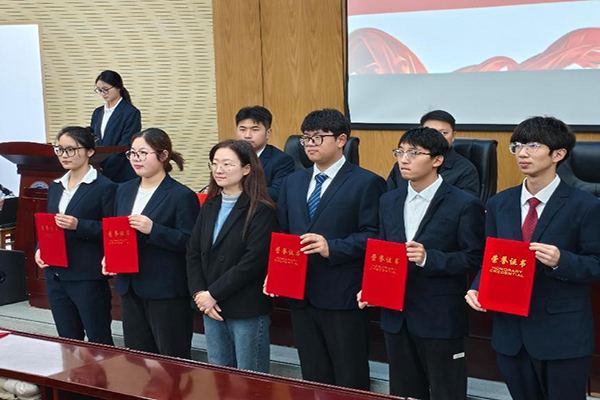 李燕飞宣读了第十五届、第十六届团总支/学生会优秀干部名单以及第十六届团总支学生会干部聘任文件,并由崔风波与李燕飞等为他们依次颁发聘书和证书。