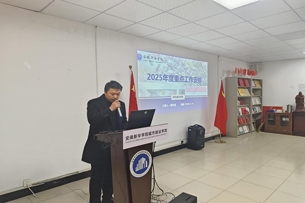 本网讯 (通讯员:陈德奎)奋楫笃行开新局,凝心聚力再出发。2025年2月14日下午,安徽新华学院城市建设学院在实验1号楼301会议室召开新学期全体教职工大会。会议旨在总结上年度的工作,明确新学期工作目标,凝聚全体教职工力量,为新学期的各项工作开好局、起好步。会议由副院长(主持工作)汪青主持,学院领导班子成员及全体教职工参加会议。