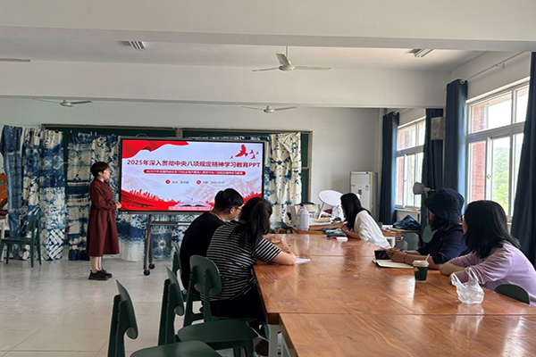 会上,高秀娟结合党的二十大以来全面从严治党取得的显著成效,系统解读了中央八项规定精神的核心要义和实践要求。通过案例分析、政策解读的形式,她深入剖析了“四风”问题的隐形变异表现,强调党员教师应始终以高度的政治自觉,严守纪律规矩,将八项规定精神融入日常教学科研和管理工作中。她表示:“作风建设永远在路上。作为高校教师党员,我们不仅要严于律己、以身作则,更要在立德树人过程中传递清正廉洁的价值导向,为营造风清气正的校园生态贡献力量。”